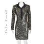 NAEEM KHAN Black Silk Cocktail Dress Covered in Black & Gold Paillettes SIZE 4