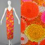 XXS 1970s Maxi Dress Orange Pink and Yellow Floral Print Sleeveless Empire Waist