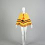 OSFM 1970s Hand Knit Poncho Fall Colors Pom Pom's Fringe Hippe Boho Look
