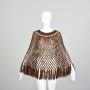 OSFM 1970s Open Knit Crocheted Poncho Fringe Trim Sheer