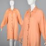 XXL Orange Dress 1990s Peach Linen Oversized Fit Long Sleeve Button Up Shirtdress