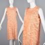 Large 1980s Dress Orange Peach Loose Fit Shimmery Sleeveless Pleated Geometric Print