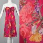 Medium Pink Dress Floral Print Strapless Empire Waist Flowy Chiffon Knee Length