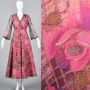 Small 1970s Dress Pink Print Sheer Long Sleeve with V Neck and A-line Skirt