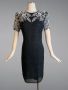 Pretty 80s Swee Lo Sequin Dress Beaded B&W Floral Design Minidress w/Shoulder Pads| Size S