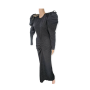 Retro 40s Black Feather Shoulder Dress Vintage 80s Party Cocktail S