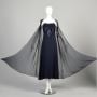 S | 1960s Empire Waist Navy Blue Silk Evening Gown w/Translucent Floating Vest by Cameo