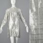 S | Lightweight 1980s Long Sleeve Metallic Silver Lame Tunic Dress by Maurada