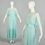 S | Victor Costa Pastel Aqua Blue Boho Chiffon Evening Maxi Dress with Capelet
