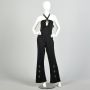 S | Black 1970s Keyhole Halter Top Bell Bottom Jumpsuit by Estivo