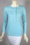 Slinky nylon ribbed knit mod 1960s top aqua blue henley deadstock S-M