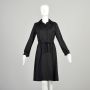 S-M 1970s Black Shirt Dress Button Front Collared Cuffed Long Sleeve Waist Tie Jersey Knit LBD