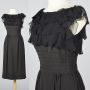Small 1940s Dress Black Cocktail Party Pinup Chiffon Ruffles Fitted Bodice