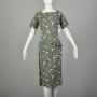 Small 1940s Novelty Print Dress All Cotton Horse Carriage Design Short Sleeve Fitted Summer Chemise