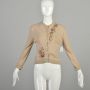 Small 1950s Beige Beaded and Sequined Cardigan Sweater with Grape Designs