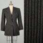 Small 1950s Classic Stripe Two Button Blazer Peak Lapel Welt Pockets Tailored Ventless Gray Black