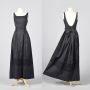 Small 1950s Dress Black Maxi Velvet Trim Backless Sleeveless Formal Gown Black Tie