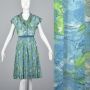 Small 1950s Dress Short Sleeve Summer Blue Floral Print Casual Day Wear Lightweight