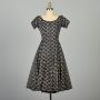 Small 1950s Flocked Dress Short Sleeve Navy Blue