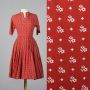 Small 1950s Lanz Dress Red Cotton Fit and Flare White Floral Print Rockabilly Full Skirt