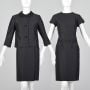 Small 1960s Black Skirt Suit Three Piece Set Boxy Jacket Short Sleeve Top Pencil Skirt Lace Trim