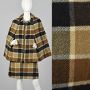 Small 1960s Brown Plaid Skirt Suit Matching Cape Two Piece Set Poncho Mini Skirt