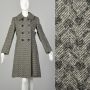Small 1960s Coat Mod Military Gray Tweed Herringbone Double Breasted Winter Outerwear