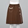 Small 1960s Faux Wrap Skirt Elastic Waist Patch Pockets Brown Lining Shorts Summer Tennis Skort