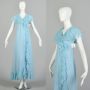 Small 1960s Light Blue Ruffled Chiffon Gown Costume Dress Up Damaged Stained
