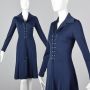 Small 1970s Mignon Dress Navy Blue Laced Corset Bodice Sexy Long Sleeve Collared