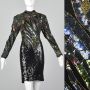 Small 1970s Judith Ann Dress Sequin Beaded Black Long Sleeve Mockneck Bodycon