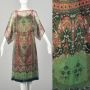 Small 1970s Victor Costa Dress Two-Piece Boho Sheer Chiffon Overdress Green Slip