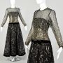 Small 1980s Dress Black Velvet Gold Sequin Embroidery Formal Long Sleeve Modest Evening Gown