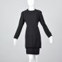 Small 1980s Valentino Miss V Black Pencil Dress Long Sleeve Velvet Trim
