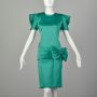 Small 1980s Emerald Green Party Dress Two Piece Top Skirt Drop Waist Bow Cocktail Dress
