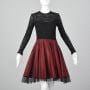 Small 1990s Dress Sheer Long Sleeve Bodice Red with Black Chiffon Overlay Full Skirt