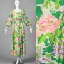 Small Green Maxi Dress 1970s Pink Floral Long Bishop Sleeve