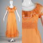 Small 1970s Orange Maxi Dress Micro White Polka Dots Empire Waist