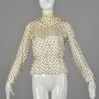 Small White Top 1960s Brown Polka Dot Long Sleeve Peplum Blouse