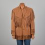 Small-Medium Tan Suede Jacket 1990s Leather Fringe Pioneer Buckskin Brown Coat