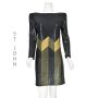 ST. JOHN 1980s Charcoal Gray & Gold Santana Knit Shift Covered in Clear Round Paillettes SIZE 4