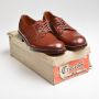 Sz7 1950s Brown Leather Endicott Johnson Shoe Derby Classic Lace-Up Heavy Stitching Deadstock VTG