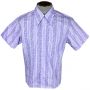 Unused Vintage 1970s Shirt Printed Purple Cotton Blend Short Sleeve L