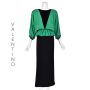 VALENTINO Vintage Green and Black Silk Faille Formal Evening Gown with Peek-a-Boo Back Size 12