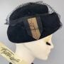 Vintage 1920s JL Hudson Black Tan Fur Felt Ritz Hat Net Veil Cloche
