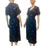 Vintage 1940s Navy Silk Dress – WWII Era Day Dress with Atomic Print – Cuffed Sleeves, Pockets