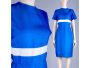 Vintage 1950s Blue White SILK Simple MCM Mid Century Pencil Dress | S