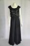vintage 1960s black silk chiffon maxi party dress w/ paillettes & beading L/XL