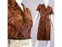 Vintage 1960s Carol Brent Psychedelic Copper Swirls Silky Midi Dress | M/L