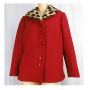 Vintage 1960s Red Wool Jacket Genuine Fur Leopard Print Collar Short Coat Made in USA